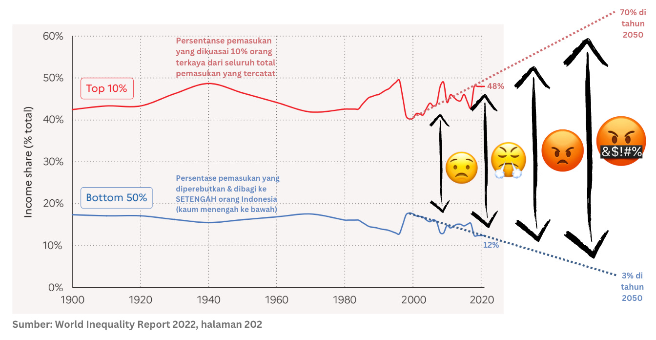 Apakah mungkin ada negara yang setengah penduduknya harus berebut 3% dari pemasukan yang ada? Karena data memproyeksikan, kita akan di kondisi itu tahun 2050.